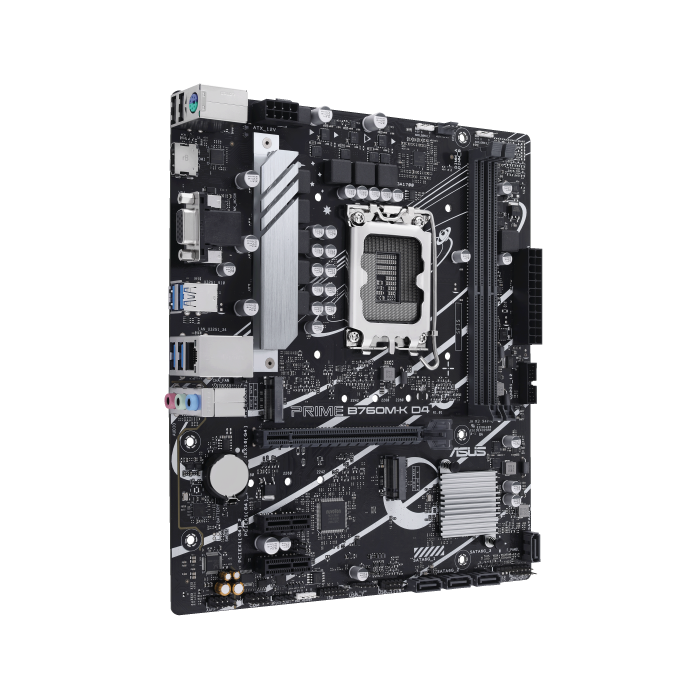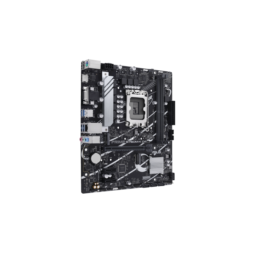ASUS Prime B760M-K D4, scheda madre Intel® B760 LGA 1700 mATX con PCIe 4.0, due slot PCIe 4.0 M.2, DDR4, Realtek 2.5Gb Ethernet, VGA, HDMI®, SATA 6 Gbps, USB 3.2 Gen 1 frontale, Aura Sync.